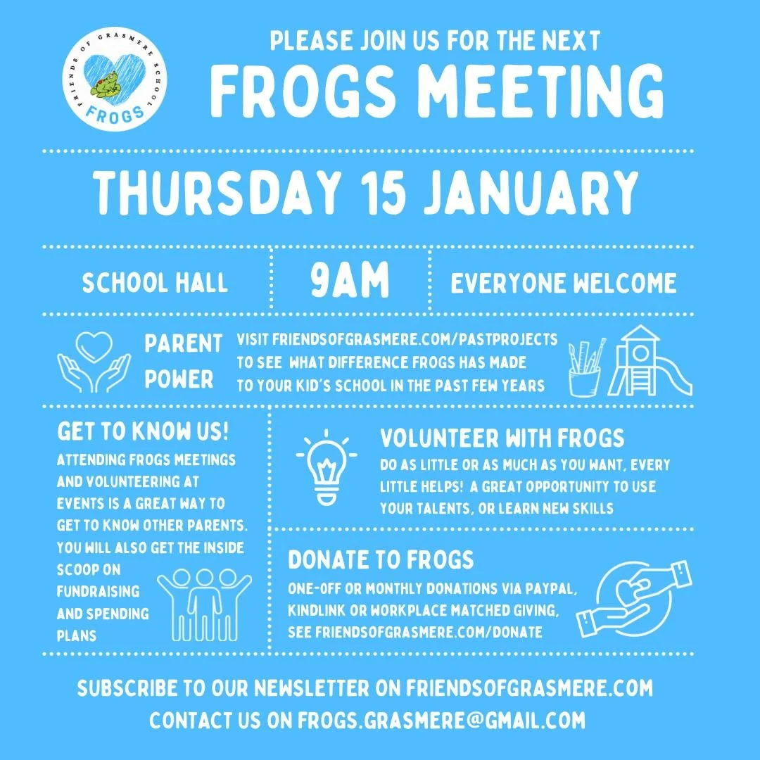 Thank you to everyone who joined us at the FROGS meeting on 19 November. It was a really productive evening, and we’re grateful to all who took the time to attend, share ideas, and help shape what we fund and support for the school. If you’d like to catch up, the meeting minutes are available to read here.