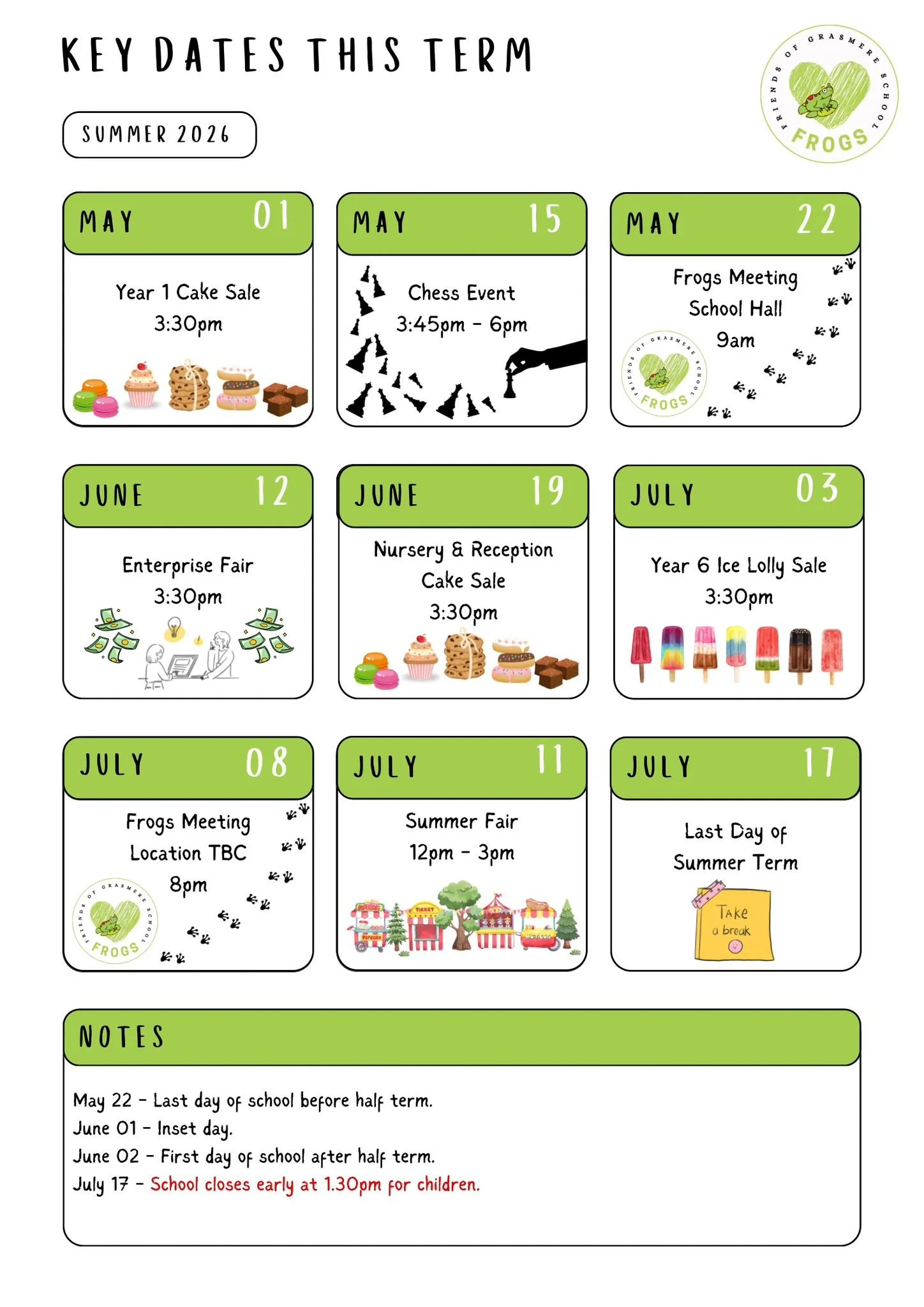 Welcome back, everyone! We hope you all had a great Easter holiday and are looking forward to jumping into the summer term together. It’s set to be a fun one, with warmer days, good company, and plenty of FROGS events for our children to enjoy.