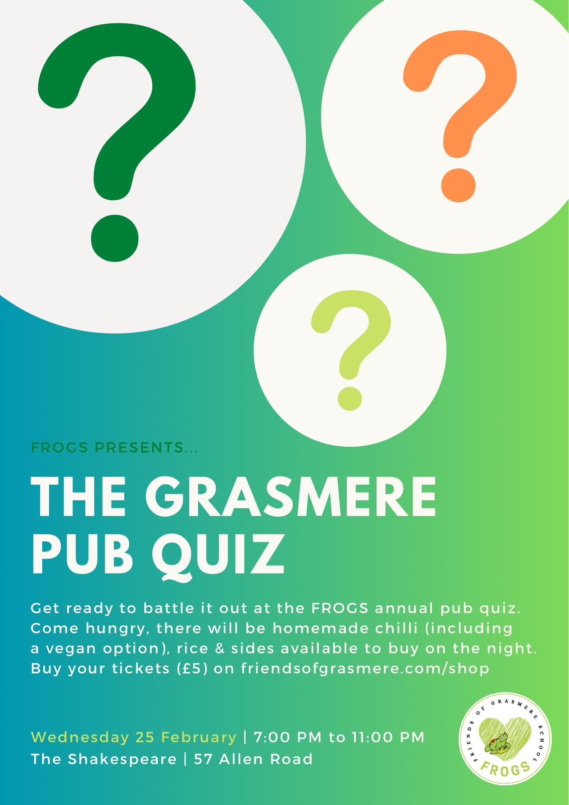 Our annual Pub Quiz is coming up soon on Wednesday, February 25th, and tickets must be purchased in advance. It’s always a brilliant evening full of laughs, friendly competition and excellent company. We’re still looking for a few volunteers to serve chilli. Volunteers can sign up here. Tickets can be purchased here.
